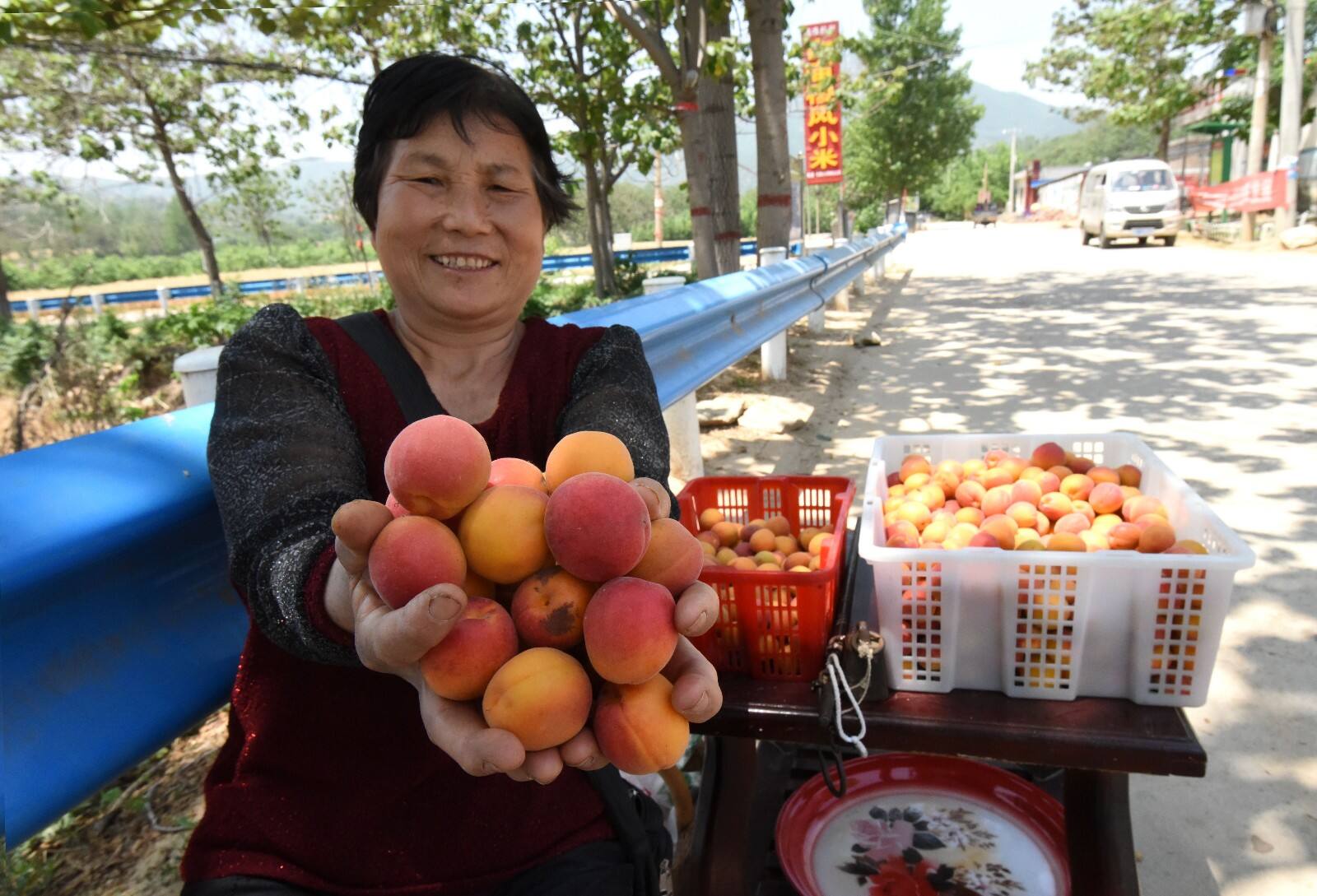 车子在蜿蜒起伏的路上颠簸前行,初秋时节,山路两旁依然是一片翠绿,火红的柿子已经挂上枝头。路面不宽,偶尔需要避让对面来的三轮车,轮胎碾过碎石,发出细碎的声响,再往前走,车辆经过一条陡坡,山路中出现了一片宽阔的平台,上面晒着刚收获的小米。