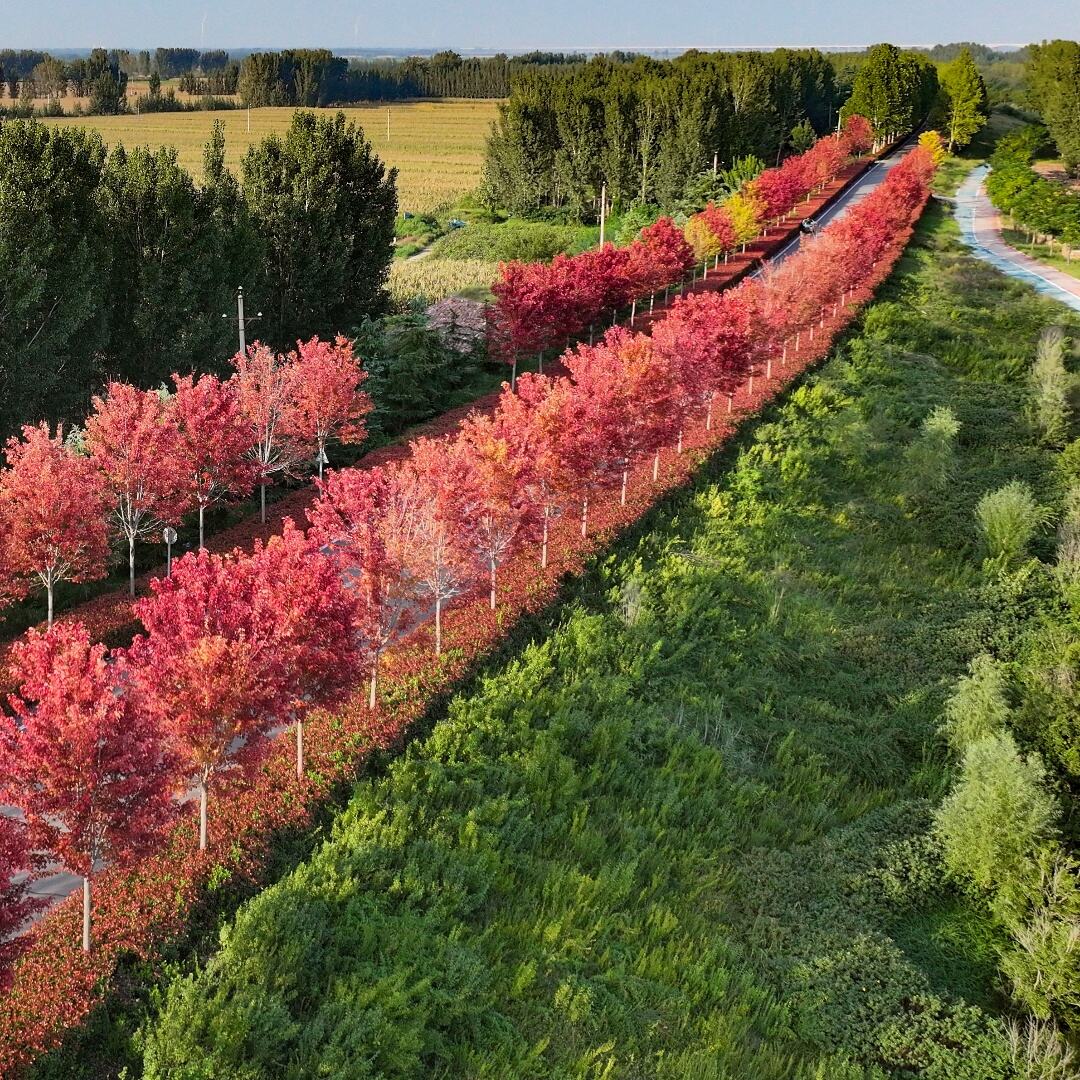 天晴了,去黄河大堤赏红叶吧