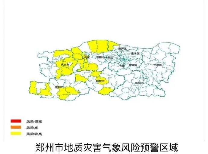 10月14日,郑州市自然资源和规划局与郑州市气象局联合发布地质灾害气象风险三级(黄色)预警。10月14日20时至15日20时郑州市地质灾害气象风险预警达到黄色预警的区域为:上街区南部,惠济区西部,巩义市大部,荥阳市大部,新密市西部及中部,登封市西部及南部,发生地质灾害的风险较高。