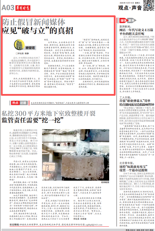 众所周知,主流媒体在引导舆论、提供信息、激励先进等方面发挥着重要作用,强调公信力,具有权威性。这是它与自媒体最大的区别。而某些“李鬼”账号,扯虎皮拉大旗,肆意收割公众信任,损害社会公信。其背后,既是投机心态作祟,也暴露出监管漏洞与信任危机。