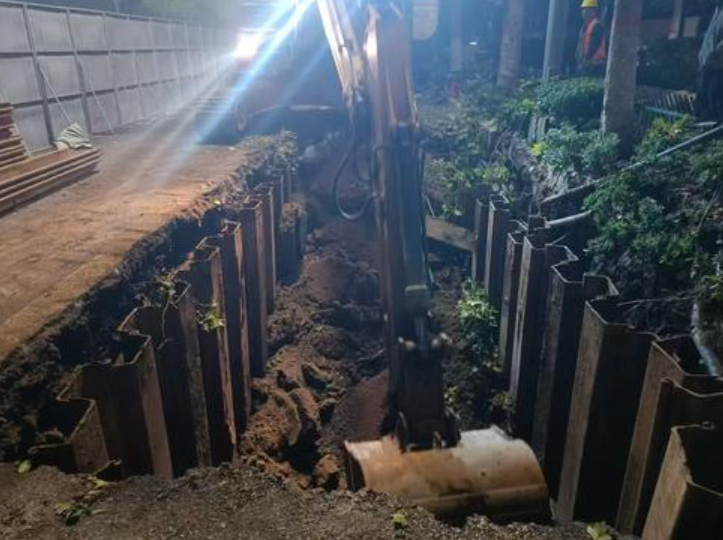 18时,钢板桩拆除完毕,对面层水稳层进行养生。
