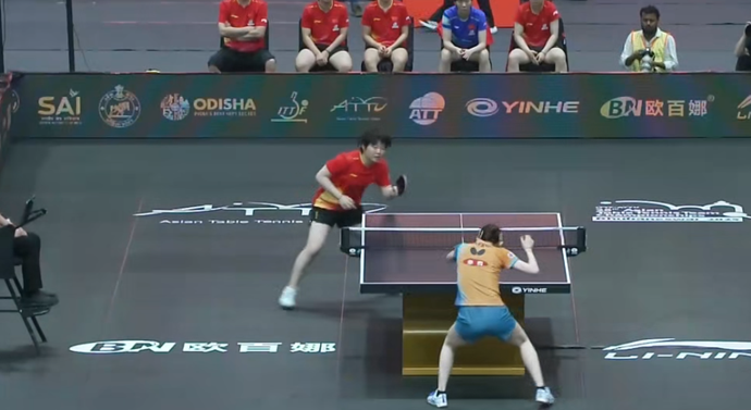 第二盘,孙颖莎11-9、11-5、11-7速胜张本美和,中国队总比分2-0领先。