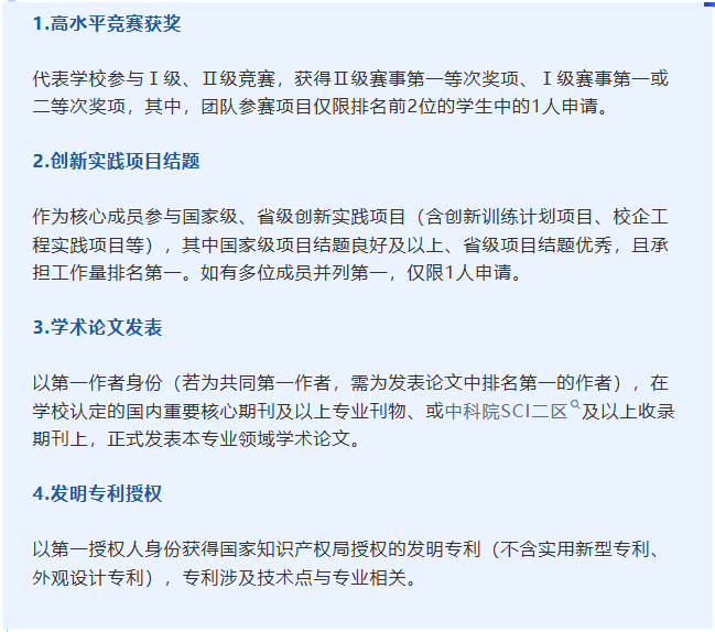 近日,南京航空航天大学发布《关于开展本科生高水平创新成果替代毕业设计(论文)试点工作的通知》,明确2026届本科毕业生可申请用高水平竞赛获奖、创新实践项目结题、学术论文发表、发明专利授权四类成果,替代毕业设计(论文)。四类成果具体要求如下: