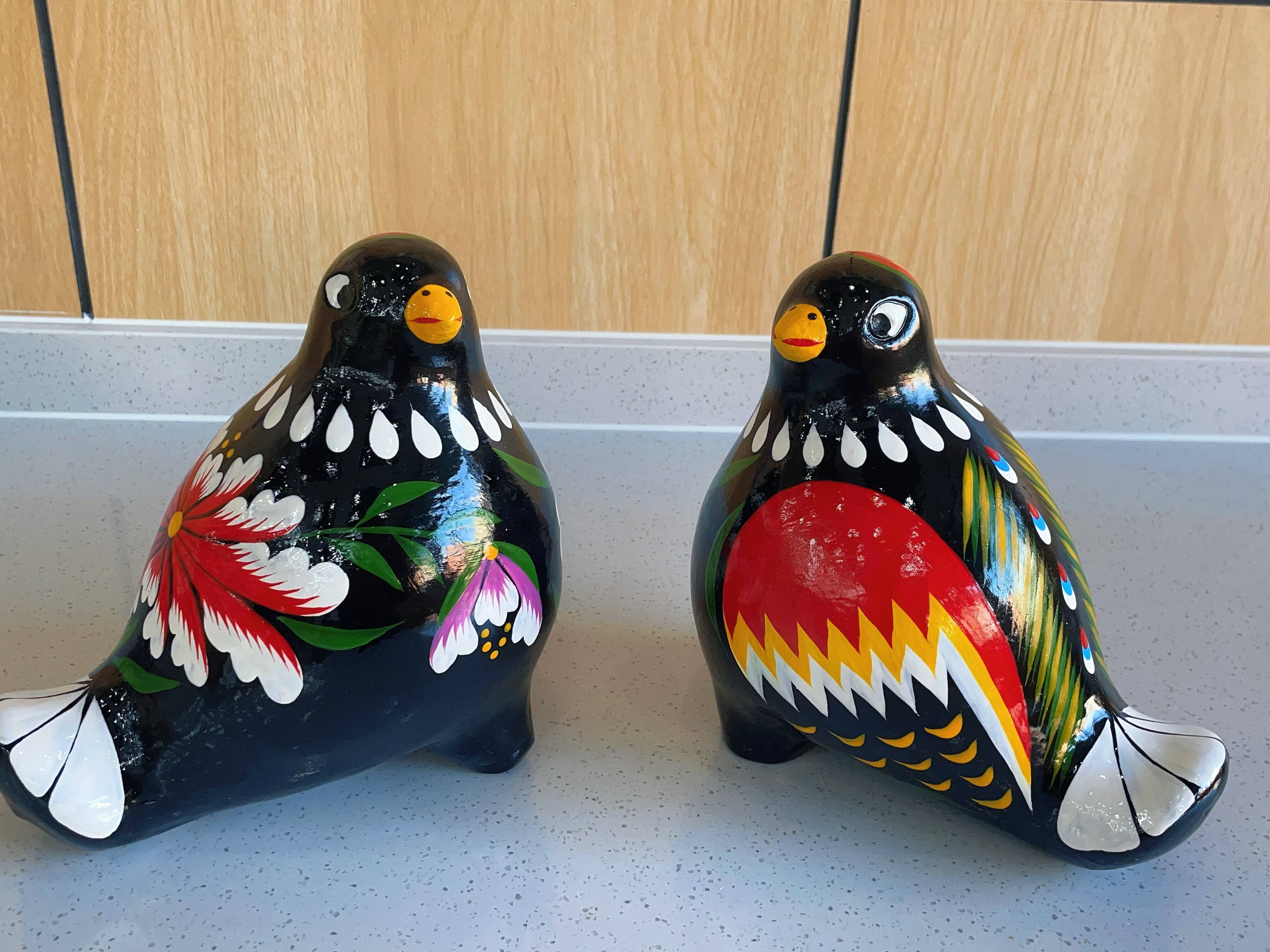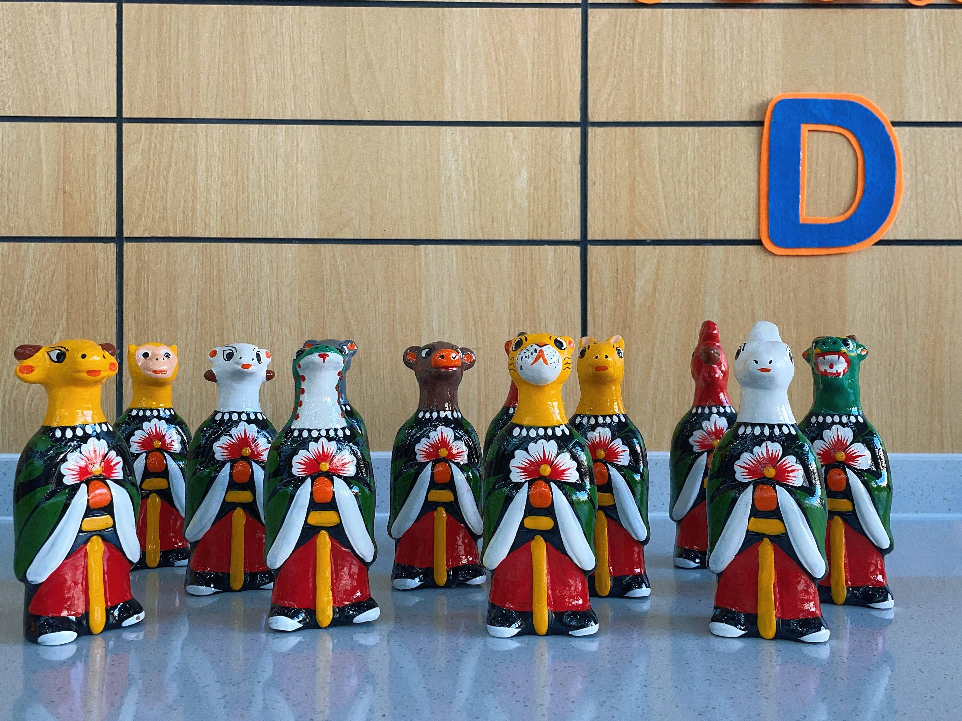 活动当天,国家级非物质文化遗产浚县泥咕咕第七代传承人杨玉冰早早来到学校,精心布置展示区。展台上,形态各异的泥咕咕作品琳琅满目,灵动威猛的雄狮、憨态可掬的十二生肖、威风凛凛的雄鸡、灵动活泼的小鸟……每一件作品都栩栩如生,色彩鲜艳,仿佛在诉说着古老的故事。