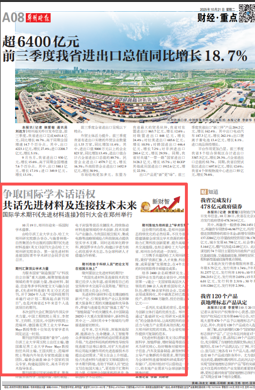 《先进材料连接(英文)》以焊接界面科学、智能焊接、增材制造等前沿技术为研究核心,恰好精准对接郑州电子信息、汽车及装备制造、新型材料等主导产业集群的升级需求,期刊将成为全球材料连接领域科研成果的“发布窗口”,而郑州恰好可以借助这一窗口,将本地产业需求与全球创新智慧精准对接。