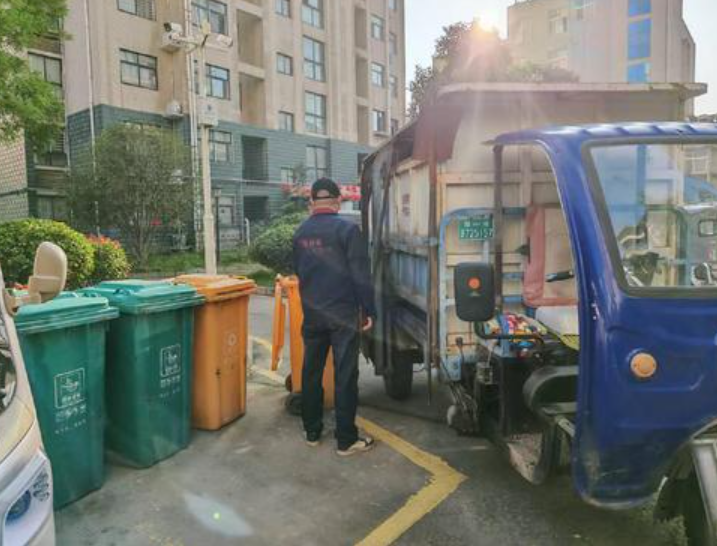 五点整,曹宇阳准时发动车辆前往格兰名家小区。按照车队规划的路线,早上先收集小区外围沿街商铺产生的垃圾,如果清运晚了就会影响上班上学路过的居民。他把车停在指定的清运点,下车解开垃圾桶的固定锁扣,操作液压杆把桶吊起来,垃圾“哗啦”一声倒进车厢,整个过程不到一分钟。早起卸货的商户老板笑着向他递来一根烟:“曹师傅,又这么早啊,有你在,门口天天都干净。”他笑着摆摆手示意在开车不能抽,等液压杆把空桶放回原位,又跳上车赶往下一个点。