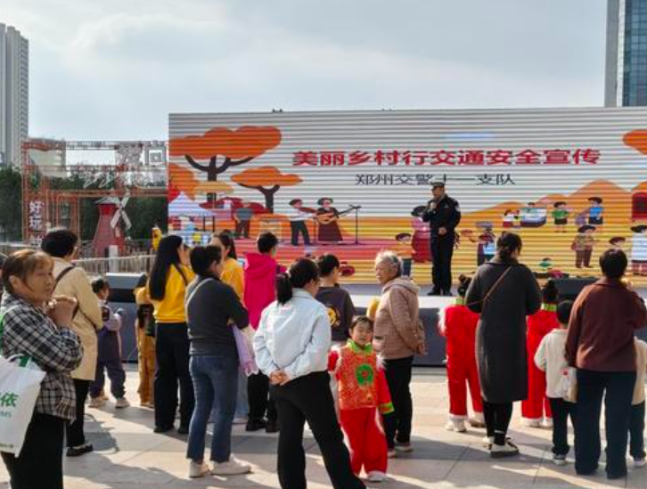 2025年10月18日下午,郑州高新区华威社区第三届“邻居一起美好”邻里节在华强广场热闹开展。郑州交警十一支队借此契机,将“美丽乡村行”交通安全巡回宣讲活动融入其中,为欢声笑语的邻里聚会增添了一抹坚实的“安全底色”。