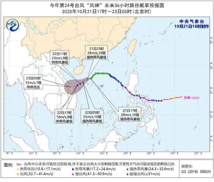 虽然“风神”不直接登陆我国,但它仍会给我国华南沿海及部分海域带来较强的风雨天气。明后天,海南、台湾等地还会有大到暴雨,局地或现大暴雨。同时,东海西南部、台湾海峡、台湾以东洋面、浙江南部沿海、福建沿海、南海西北部和中西部的部分海域或地区的风力可达9级至10级,阵风11级至12级。提醒海上作业及出行的朋友们务必注意安全,做好相应的防范措施。