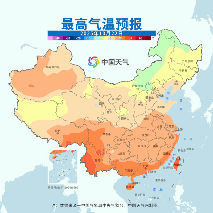 今天白天,北方大部已经开始逐渐回暖,但南方仍在持续降温中。截至14时,在国家级气象监测站中,仅云南景洪气温超过30℃。江南一带普遍在20℃以下,华南多地20℃出头,像广州、长沙,今天都提前体会到了常年12月的凉意。