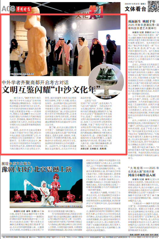 10月21日,“2025年郑州·埃尔奥拉考古学学术交流会”在郑州商代都城遗址博物院举办。时值中国和沙特建交35周年和中沙文化年,中外专家学者和相关领域代表齐聚华夏文明重要发祥地——河南郑州,围绕公元前2000年至公元2世纪埃尔奥拉与河南的古代城市规划与文字、贸易路线、精神世界等学术议题展开深入研讨,共同见证两国丰硕的文化交流成果和璀璨绽放的友谊之花。