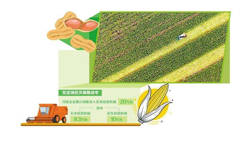 “早准备、快抢收、强保障”,这9个字在这场抗灾保粮战中得到生动诠释。数据显示,河南全省累计调集投入各类收获机械20万台,其中玉米收获机械8.3万台,花生收获机械10万台;累计投入履带式玉米收获机7980台,其中7014台是通过“换装割台”实现“一机多用”的成果。742支农机应急作业服务队、832个区域农机服务中心全部投入战斗,在泥泞的田野里形成一道抗灾抢收的风景线。