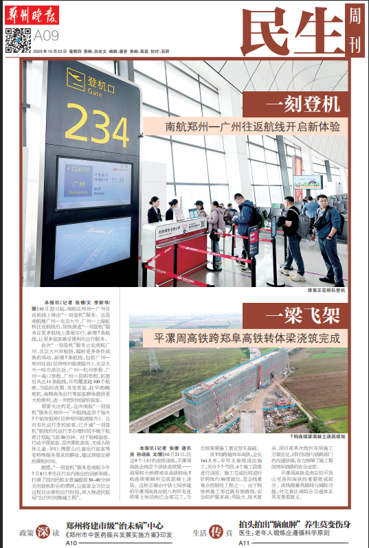 10月22日起,南航在郑州—广州往返航线上推出“一刻登机”服务。这是南航继广州—北京大兴、广州—上海虹桥往返航线后,加快推进“一刻登机”服务在更多航线上落地实行,新增7条航线,让更多旅客感受便利化出行服务。