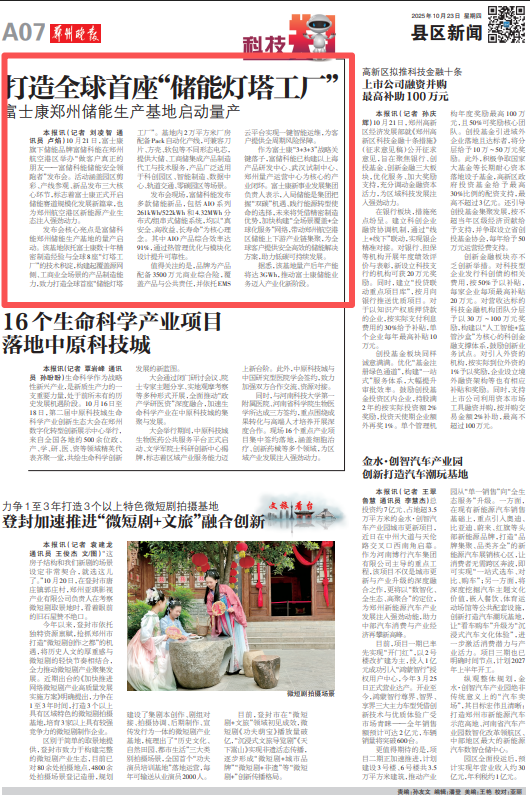 10月21日,富士康旗下储能品牌富储科能在郑州航空港区举办“做客户真正的朋友——富储科能储能安全领跑者”发布会。活动涵盖园区剪彩、产线参观、新品发布三大核心环节,标志着富士康正式开启储能赛道规模化发展新篇章,也为郑州航空港区新能源产业生态注入强劲动力。