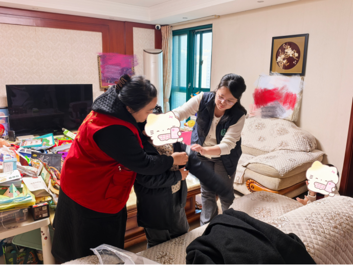 当社工们捧着叠得整整齐齐的冬衣走进家门时,孩子们眼中瞬间亮起了光——有的轻轻摸着衣服上的图案,有的迫不及待伸胳膊试穿。