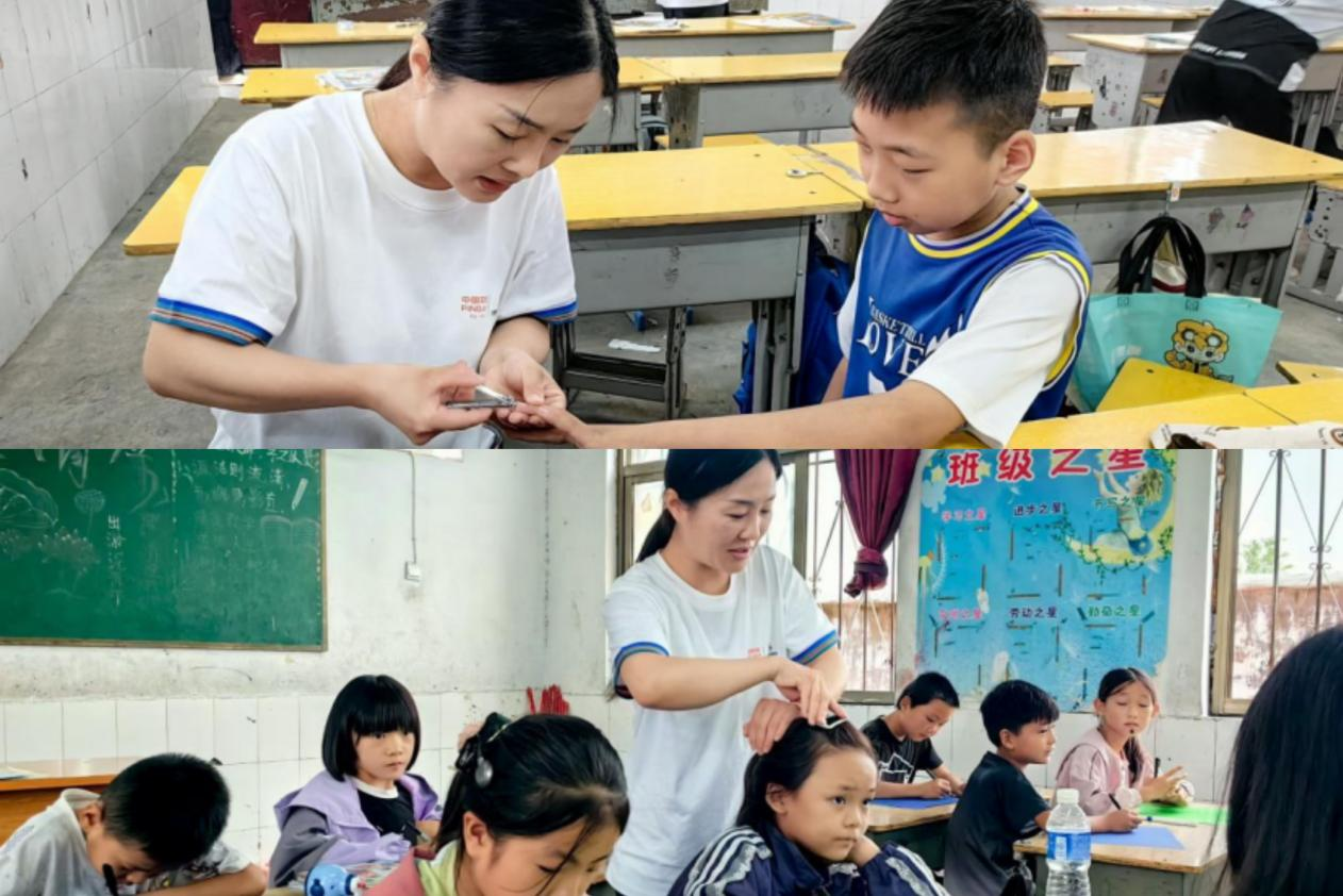 除课堂教学外,志愿者亦格外关注孩子们的生活点滴:每日午休时,主动为低年级学生修剪指甲、梳理头发,陪伴其谈心交流。很多学生总爱凑到志愿者身边,好奇询问小镇以外的生活与学习环境。这些看似琐碎的互动,实则是支教“情感联结”的重要组成——平安银行始终坚信,支教绝非单向“给予”,而是双向“陪伴”与“共同成长”。志愿者以真诚与关怀拉近与孩童的距离,让乡村孩子切实感受外界的温暖与重视,这种情感支持对孩童心理健康与人格发展至关重要。