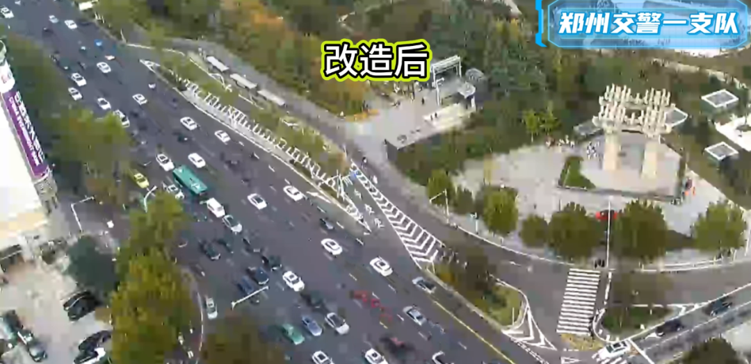 郑州司机请注意!金水路未来路口通行方式已调整。郑州交警一支队经实地调研后对路口改造:在公交港湾设公交专属车道,禁止私家车通行;通过标志标线引导右转车辆直接进金水路主路,不再入港湾;设减速让行标志提示安全汇入。改造后,主路与右转车流更有序,减少抢道加塞引发的拥堵,金水路通行效率显著提升,事故发生率下降。