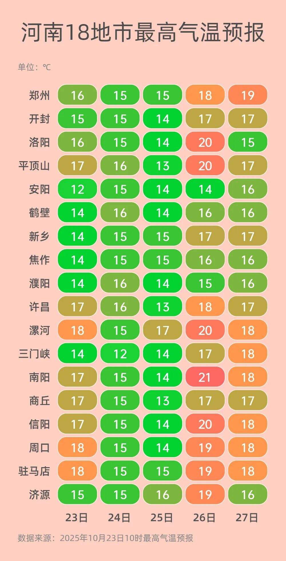气温:10℃~15℃