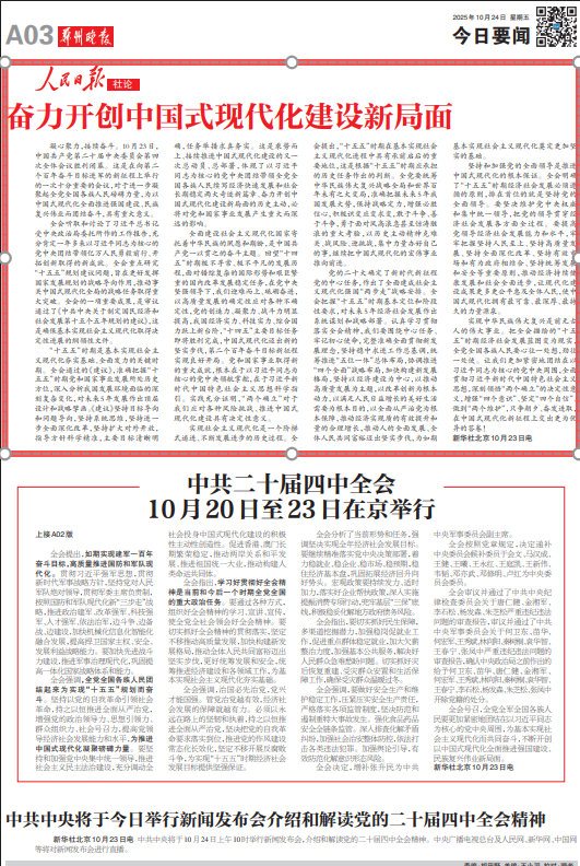 凝心聚力,接续奋斗。10月23日,中国共产党第二十届中央委员会第四次全体会议胜利闭幕。这是在向第二个百年奋斗目标进军的新征程上举行的一次十分重要的会议,对于进一步凝聚起全党全国各族人民磅礴力量,为以中国式现代化全面推进强国建设、民族复兴伟业而团结奋斗,具有重大意义。