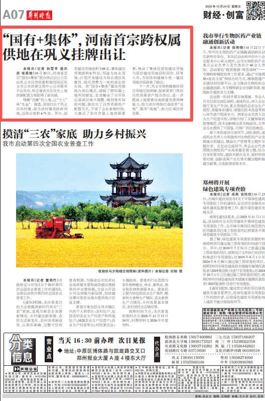 10月20日,河南省首宗“国有+集体”组合供应出让公告由巩义市自然资源和规划局在巩义市公共资源交易中心公共服务平台发布,标志着该市在优化土地资源配置方面取得了新突破。