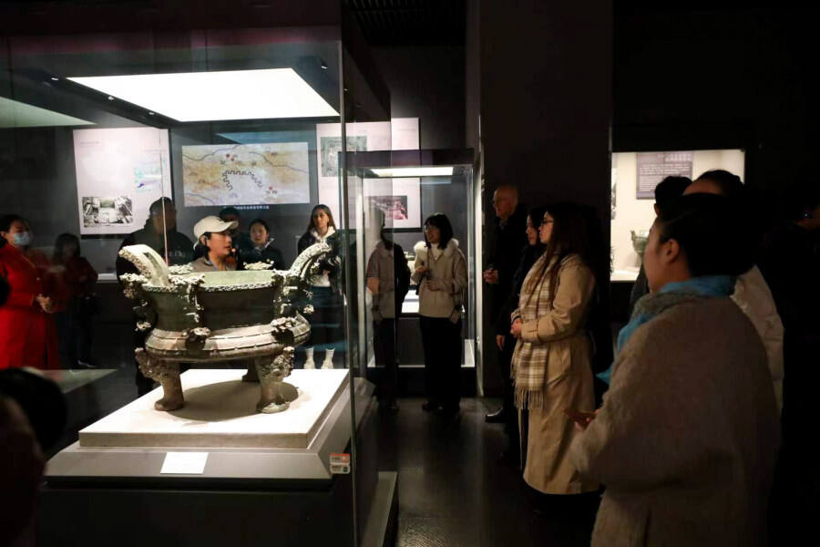 当日上午,旅行商代表团首站来到河南博物院。这座始建于1927年的国家一级博物馆,馆藏17万余件文物,以史前文物、商周青铜器、历代陶瓷器、玉器为特色。在讲解员引导下,代表团重点参观了贾湖骨笛、妇好鸮尊等九大镇馆之宝。在讲解员的介绍中,触摸中原文明的厚重脉络。