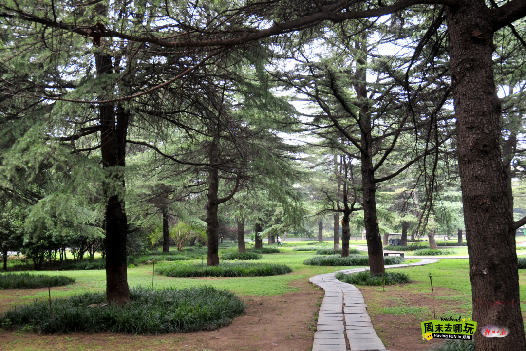 凋零的荷塘与远处的白色雕塑相映成趣,高大的雪松林依旧保持着四季不变的深绿,庄重而肃穆。一旦走入成片的雪松林中,那种悠远苍茫的气息便扑面而来,仿佛能感染林中的每一寸土地与生命。