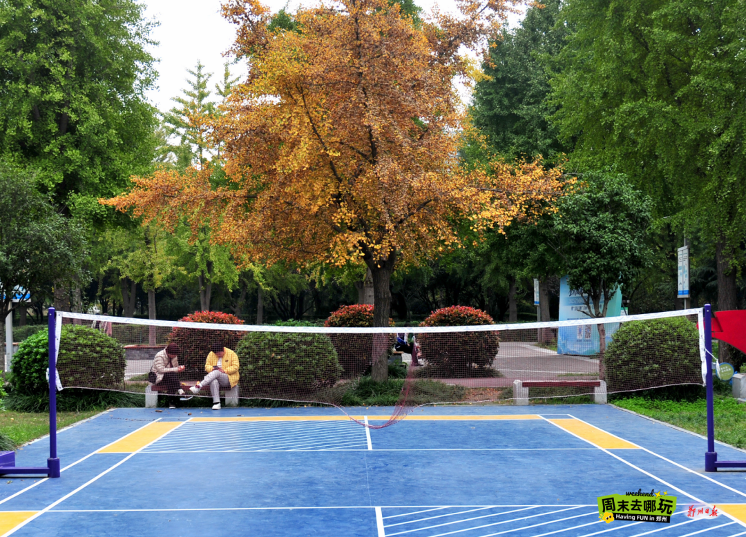 林深处静置着几块羽毛球场,仿佛在等待有人在这绚烂秋色中挥拍起舞,体验运动与自然交融的惬意。