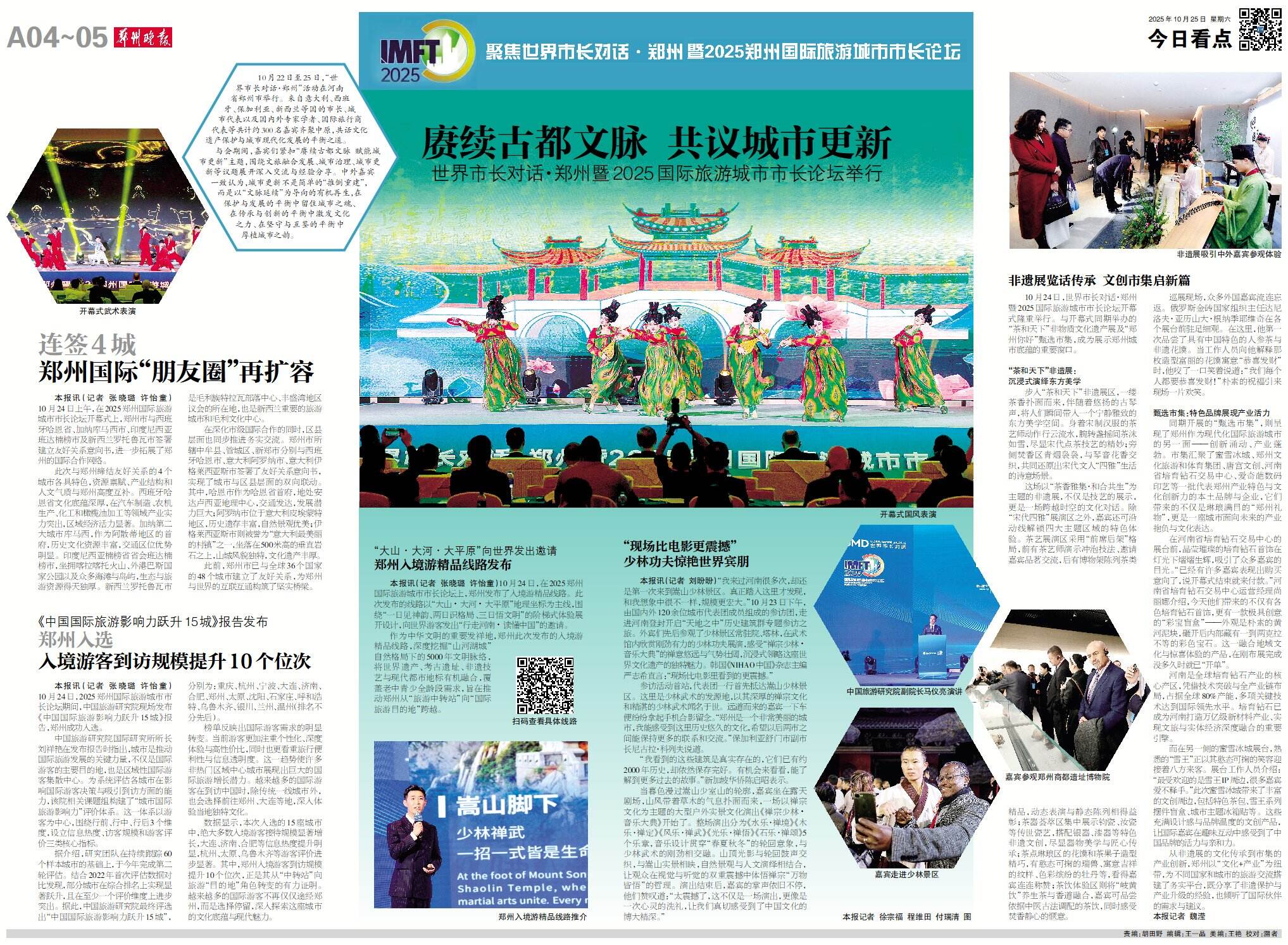 10月24日,2025郑州国际旅游城市市长论坛期间,中国旅游研究院现场发布《中国国际旅游影响力跃升15城》报告,郑州成功入选。