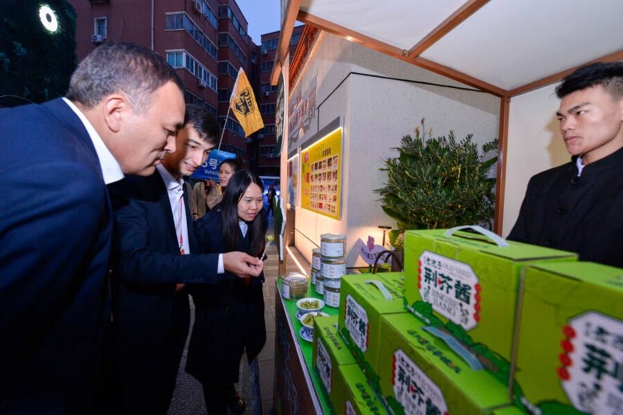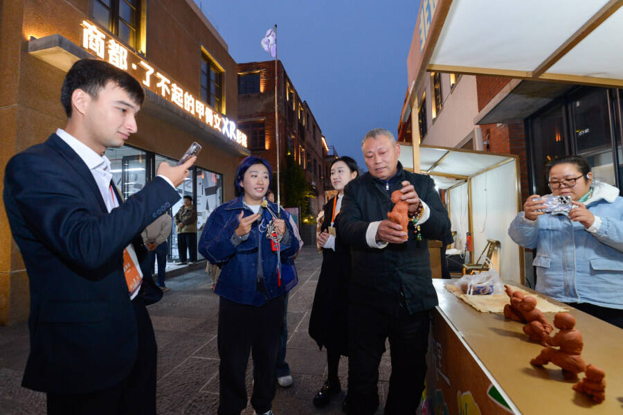 第二站嘉宾们来到了阜民里文化街区,在这里,历史与新生相呼应,阜民里延续了百年的街巷格局和近代郑州建筑的风貌,以“老郑州+新青年”的发展理念营造更加宜居的人居环境,成为郑州文化体验综合体新名片。在这里,嘉宾们体验了河南特色——荆芥酱,品尝到各色郑州地道小吃,还尝试了传统簪花,各种全新的市井体验让嘉宾们感受到浓浓的烟火气和人情味。“这是我从未有过的新奇体验。”一位体验簪花的嘉宾说道。