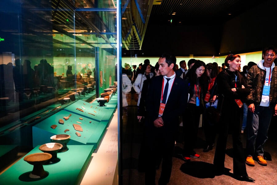 “这座距今约3600年的商代第一座都城遗址,历经数代考古人薪火相传的发掘与研究,不断刷新世界对中国早期文明的认知。”讲解员耐心细致的讲解让嘉宾们对于商都遗址有了更多的认识,他们频频驻足,认真察看博物馆的相关文字介绍,对巍巍亳都的恢弘气象与灿烂文明表达惊叹。