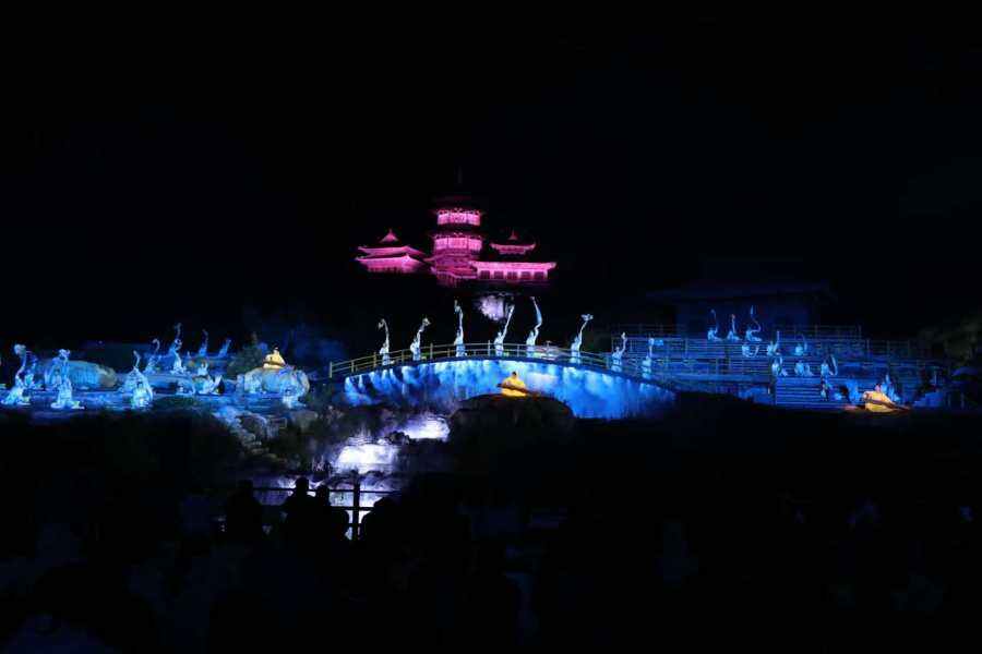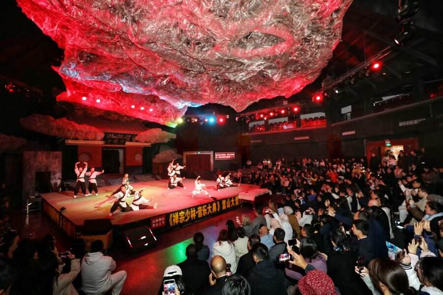 整场演出分为《水乐·禅境》《木乐·禅定》《风乐·禅武》《光乐·禅悟》《石乐·禅颂》五个乐章,音乐设计贯穿“春夏秋冬”的轮回意象,与少林武术的刚劲相交融。山顶光影与轮回鼓声交织,与嵩山实景相映,自然景观与人文演绎相结合,让观众在视觉与听觉的双重震撼中,体悟禅宗“万物皆悟”的哲理。