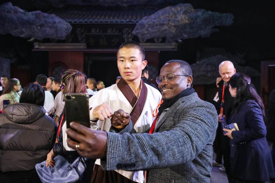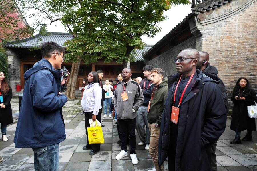 “我来过河南很多次,却还是第一次来到嵩山少林景区。真正踏入这里才发现,和我想象中很不一样,规模更宏大。”10月23日下午,由国内外120余位城市代表团成员组成的参访团,走进河南登封“天地之中”历史建筑群开启专题参访之旅。外宾们先后参观了少林景区常驻院、塔林,在武术馆内欣赏刚劲有力的少林功夫展演,感受“禅宗少林?音乐大典”的禅意悠远与气势壮阔,沉浸式领略这座世界文化遗产的独特魅力。韩国《NIHAO中国》杂志主编严志希直言,“现场比电影里看到的更震撼。”