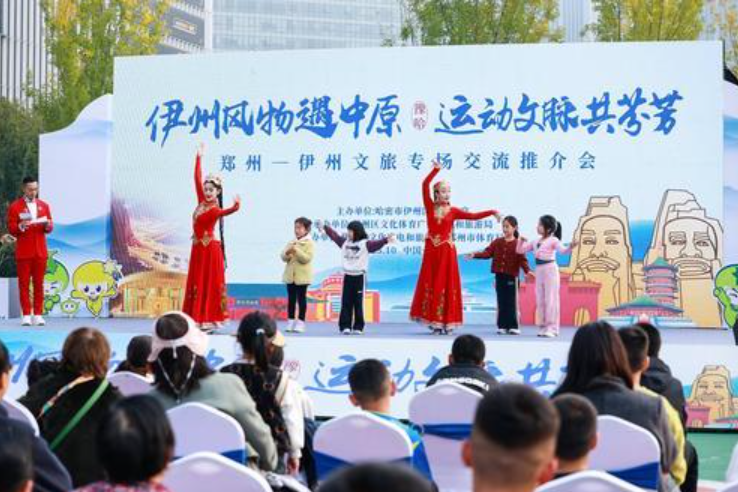 豫哈携手谱新篇,文旅交流促振兴。10月26日,郑州新区市民体育公园东广场热闹非凡——“伊州风物遇中原?运动文脉共芬芳”河南首场文旅交流活动在这里启幕。作为活动的首站,这场以“赛事为桥、文旅为核、非遗为韵”的活动,通过赛场上的奔跑、非遗舞蹈的旋律、文创产品的温度,让郑州群众沉浸式触摸伊州魅力,也让两地情谊在交往交流中升温。