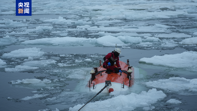 △“探索三号”在北极密集冰区破冰航行。