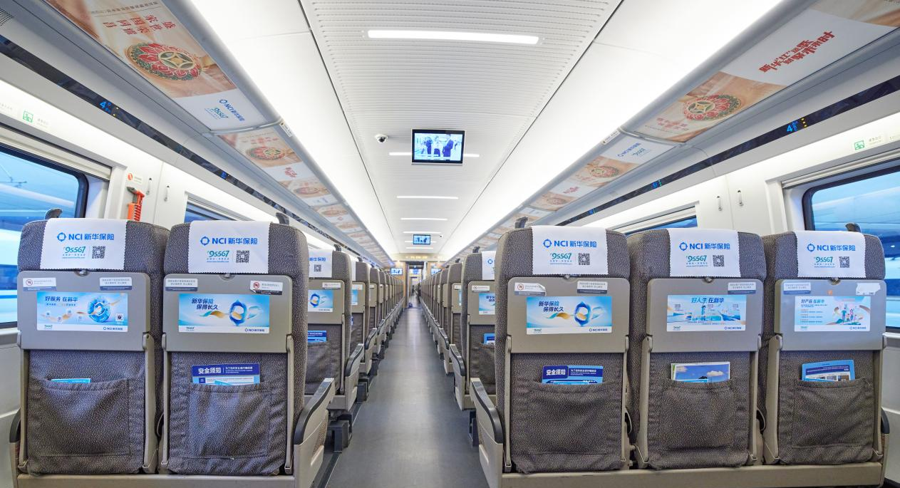 依托高铁的强大客流和独特场景优势,新华保险创新打造“沉浸式媒体展示+首发仪式+车上互动”立体化传播新范式。在高铁这一沉浸式“品牌移动展厅”中,车身彩贴、头片、桌贴、品牌天幕、海报等全媒体载体,全方位、多维度展示了新华保险的品牌实力与产品服务优势。公司还联动哈尔滨、西安、杭州、石家庄、深圳、上海、郑州、北京等核心城市,开展车站首发仪式和车上打卡互动体验活动。