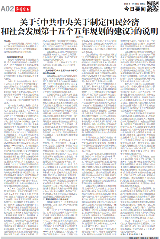 《建议》稿提出了一些重要观点和重大举措。这里,就其中几个重点问题作简要说明。