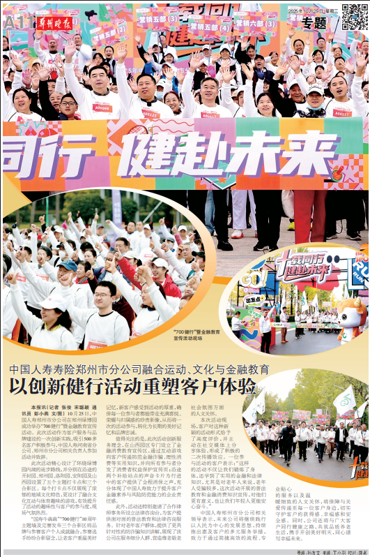 10月25日,中国人寿郑州市分公司在郑州绿博园成功举办“700健行”暨金融教育宣传活动。此次活动作为客户服务与品牌建设的一次创新实践,吸引500多名客户积极参与,中国人寿河南省分公司、郑州市分公司相关负责人参加活动并致辞。