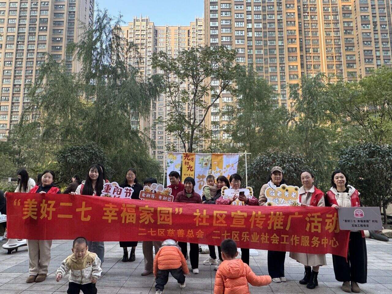 为进一步深化“幸福家园”工程实施,弘扬尊老敬老的传统美德,10月28日,在重阳佳节来临之际,郑州市二七区慈善总会“美好二七 幸福家园”村社互助工程项目组在嵩山路街道环云社区举办了“幸福家园社区行,情暖重阳颂金秋”宣传推广活动。