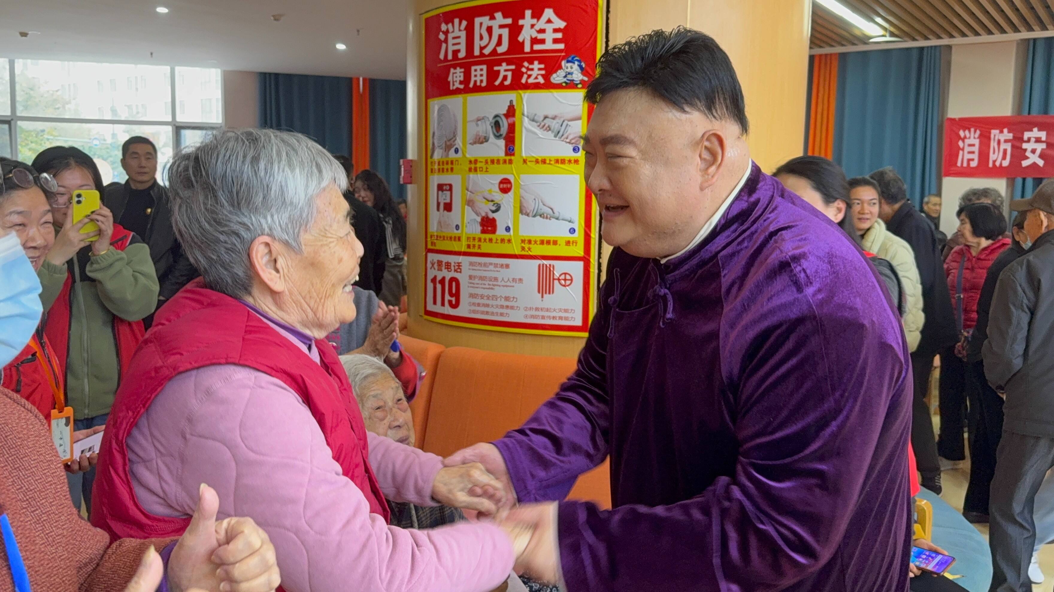 作为本场演出的压轴嘉宾,国家一级演员、中国曲艺最高奖牡丹奖获得者范军与明男男合作带来相声《智者见智》,他用幽默诙谐的语言、夸张有趣的表演,结合河南方言特色,与现场老人频频互动,现场掌声、笑声此起彼伏。演出过程中,范军还多次走下舞台,与老人握手交谈,询问他们的生活情况,送上重阳节的祝福,让老人们倍感亲切。
