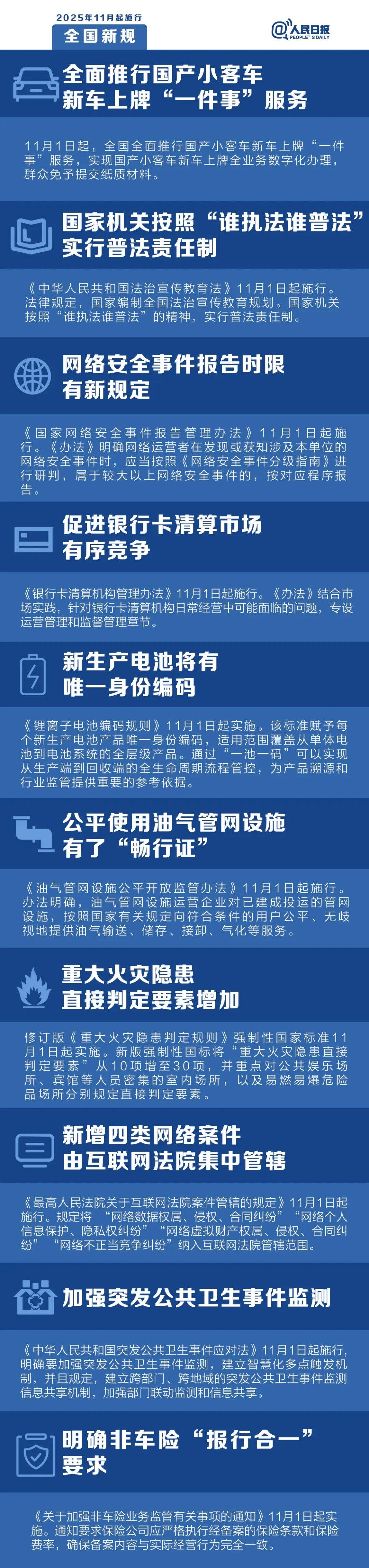 ①全面推行国产小客车新车上牌“一件事”服务。②新增四类网络案件由互联网法院集中管辖。③上海新增老年人患病住院陪护假。④福建:骑电动车打电话等行为将面临罚款。⑤海南:离岛免税商品扩容……↓
