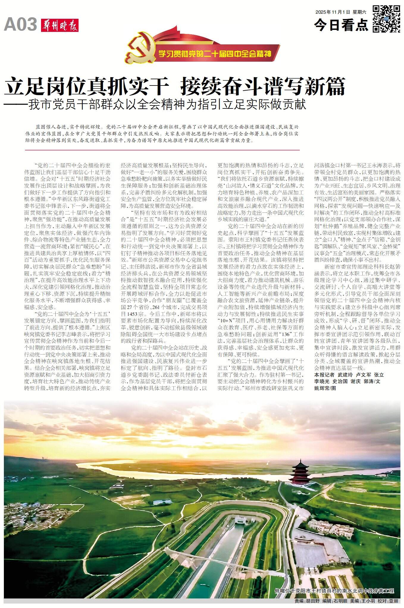 蓝图催人奋进,实干铸就辉煌。党的二十届四中全会开启新征程,擘画了以中国式现代化全面推进强国建设、民族复兴伟业的宏伟蓝图,在全市广大党员干部群众中引发热烈反响。大家表示将把思想和行动统一到全会部署上来,结合岗位实际将全会精神落到实处,奋发进取、真抓实干,为奋力谱写中原大地推进中国式现代化新篇章贡献力量。