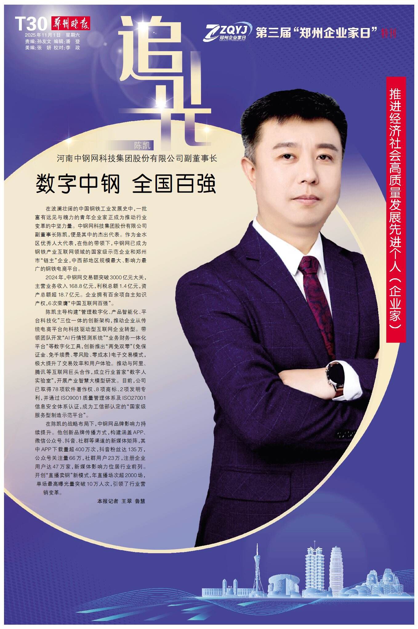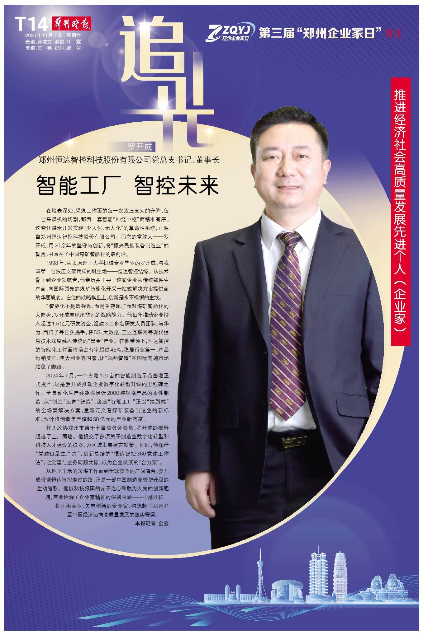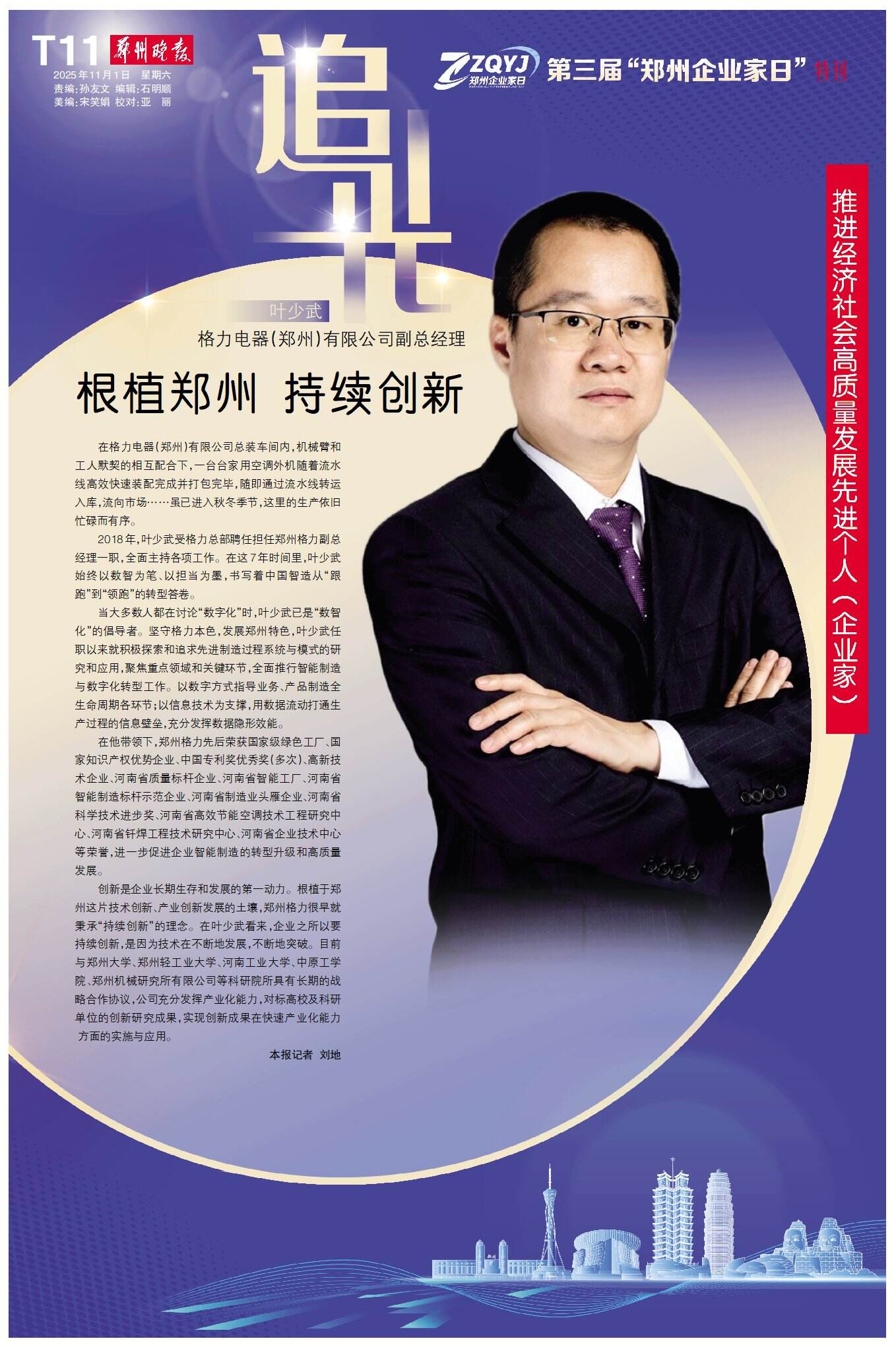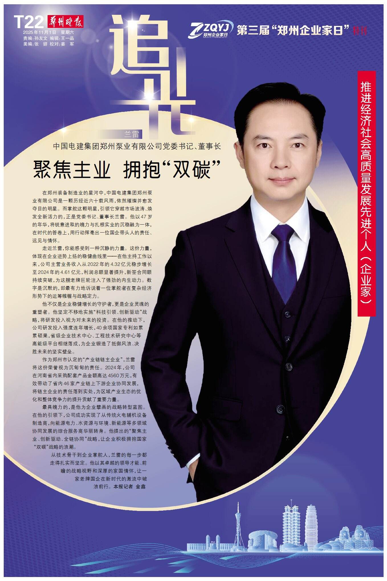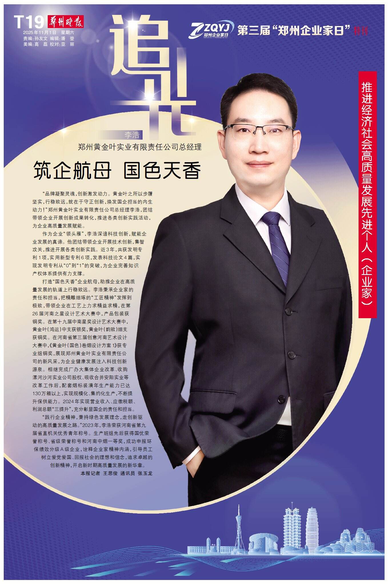 11月1日,郑州的聚光灯再次聚焦于企业家群体:历经三载,“郑州企业家日”如约而至——这座城市对企业家的礼赞始终坚定,这片热土对奋斗者的关怀依旧真挚。今天,我们再次以城市之名,致敬企业家,为奋斗者喝彩。