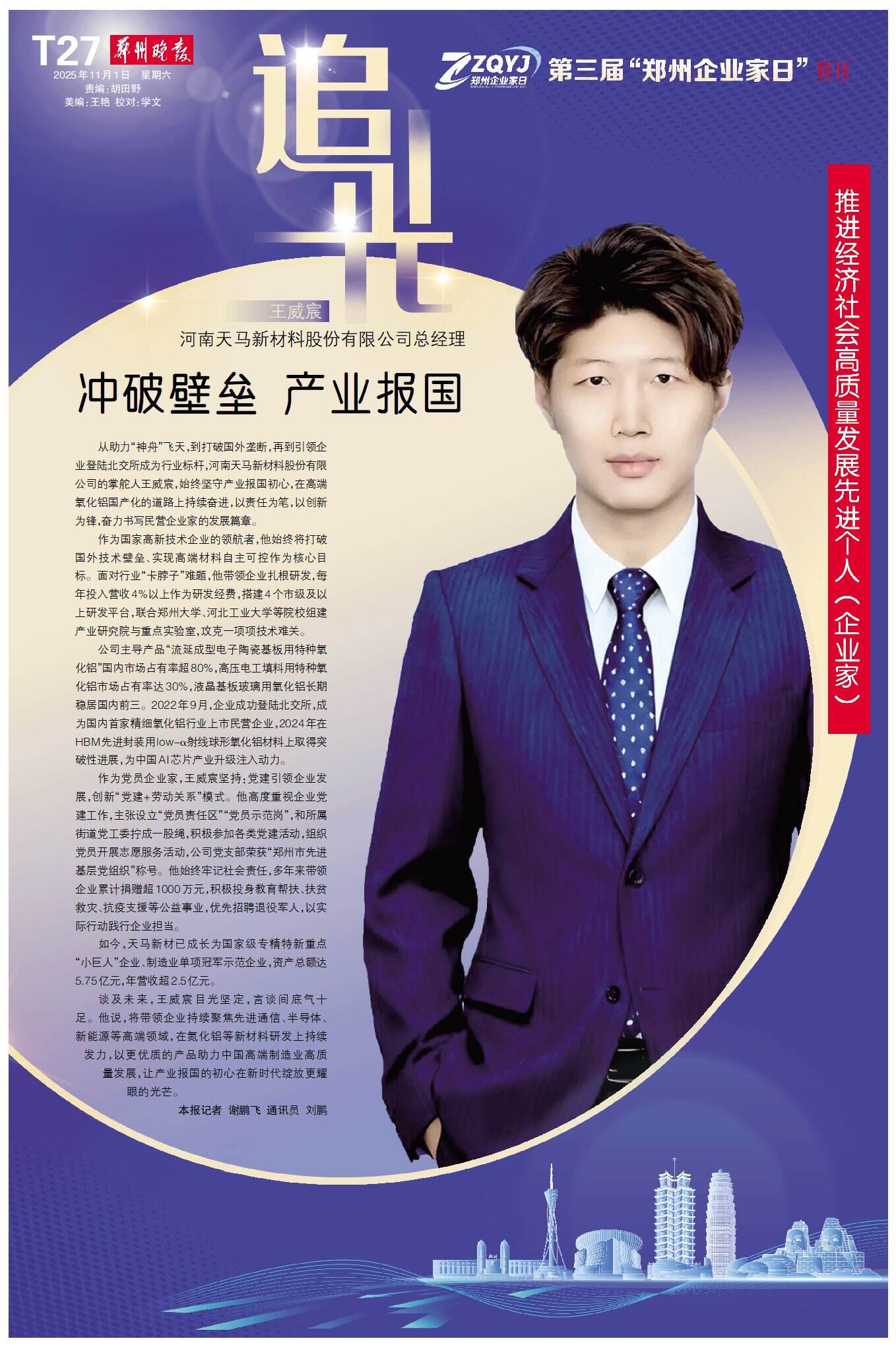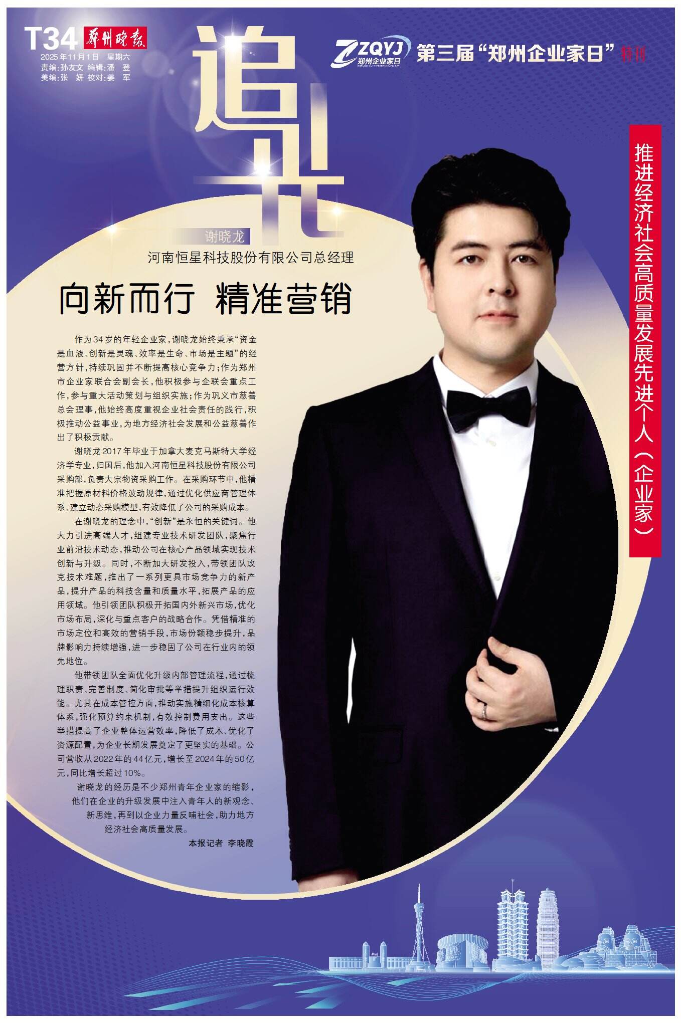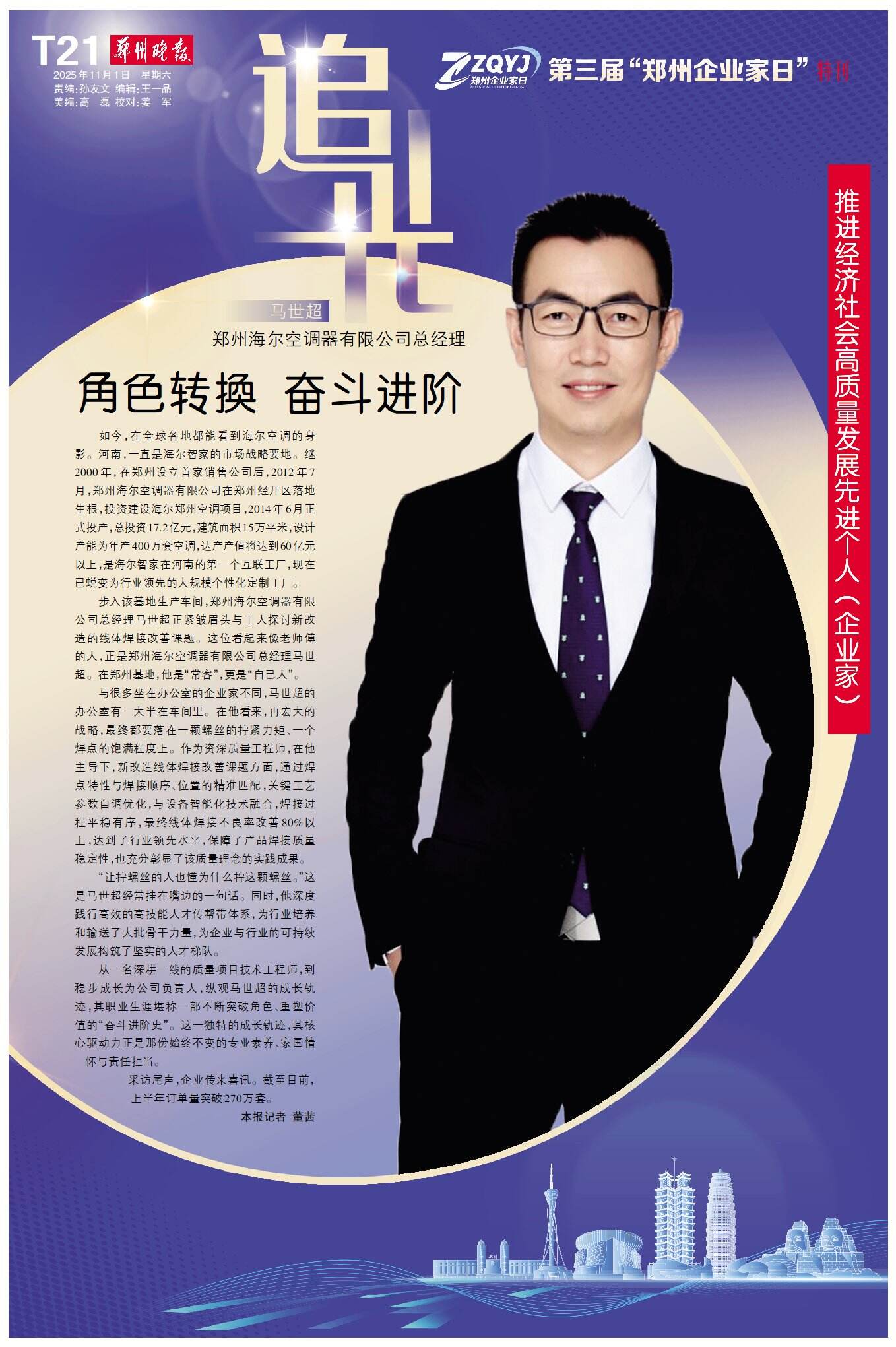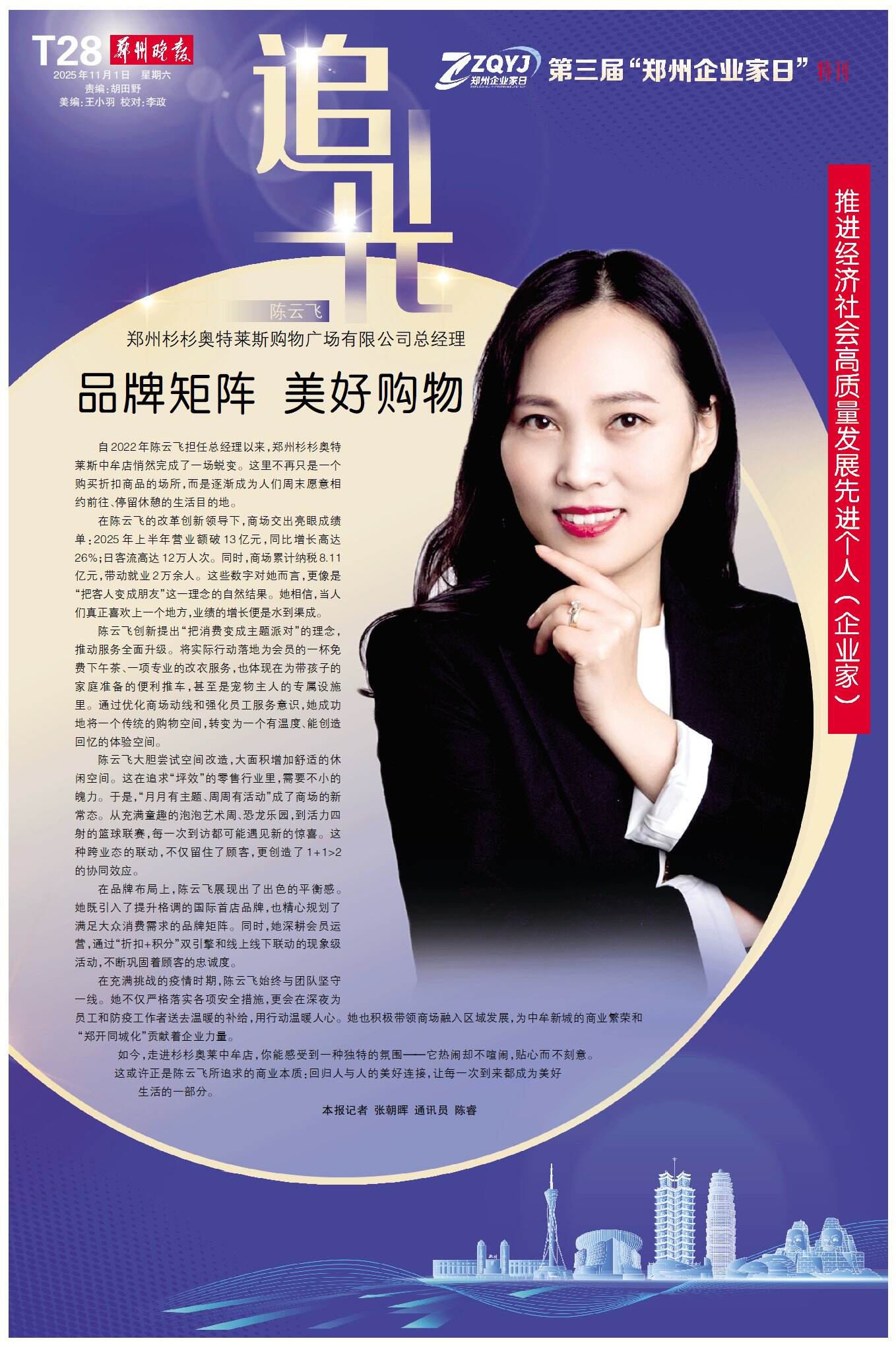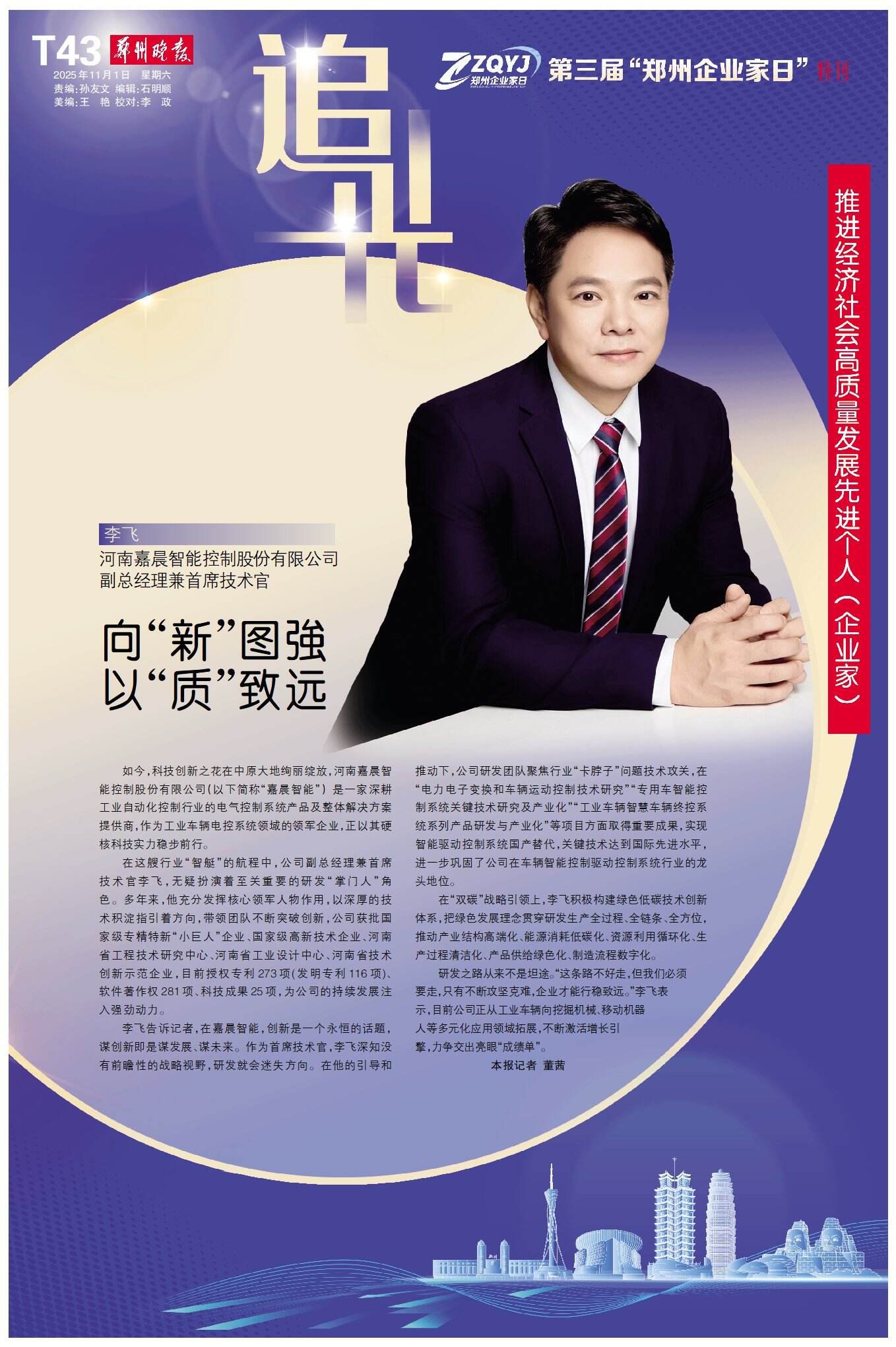 11月1日,郑州的聚光灯再次聚焦于企业家群体:历经三载,“郑州企业家日”如约而至——这座城市对企业家的礼赞始终坚定,这片热土对奋斗者的关怀依旧真挚。今天,我们再次以城市之名,致敬企业家,为奋斗者喝彩。
