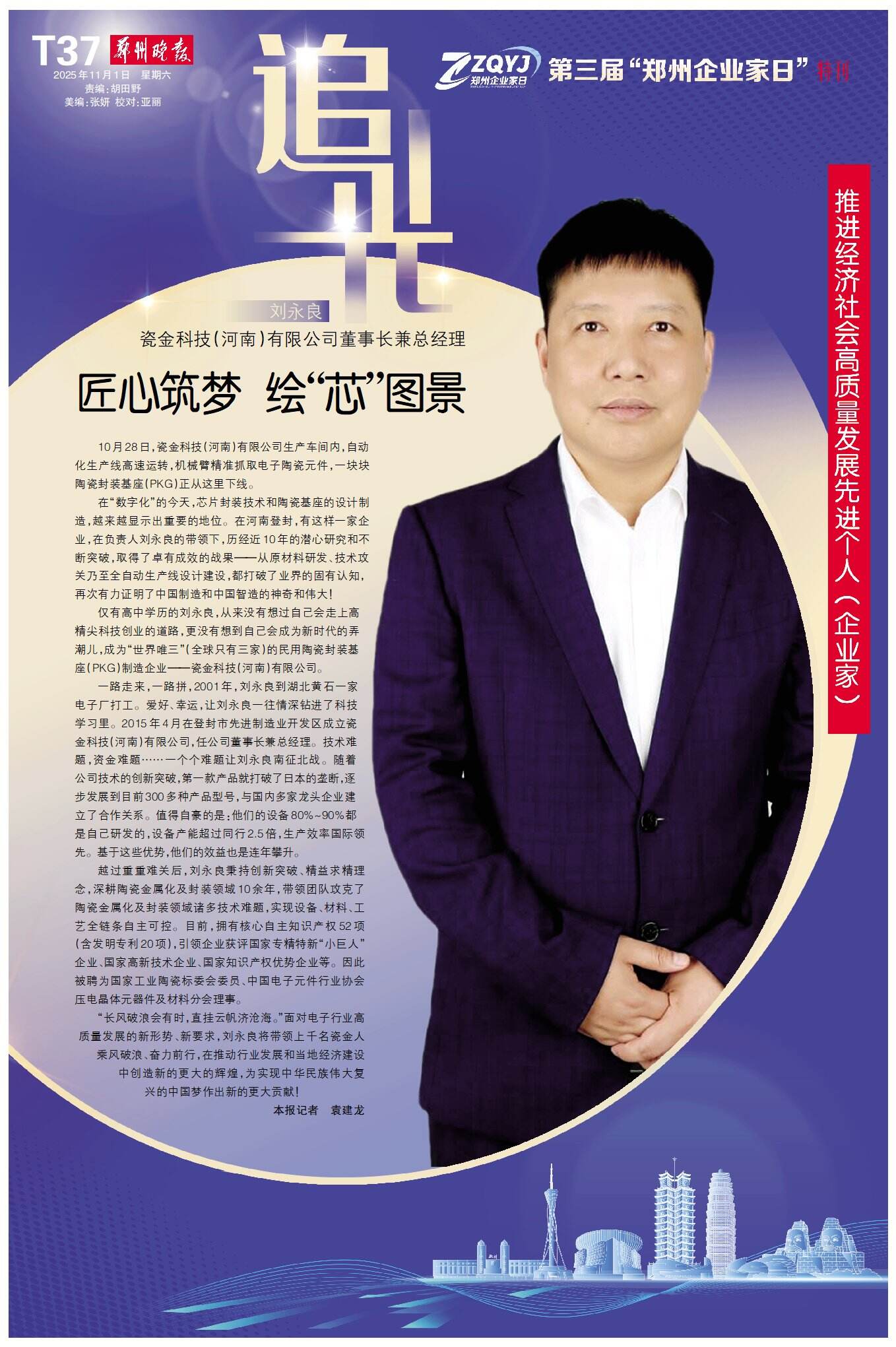 仅有高中学历的刘永良,从来没有想过自己会走上高精尖科技创业的道路,更没有想到自己会成为新时代的弄潮儿,成为“世界唯三”(全球只有三家)的民用陶瓷封装基座(PKG)制造企业——瓷金科技(河南)有限公司。
