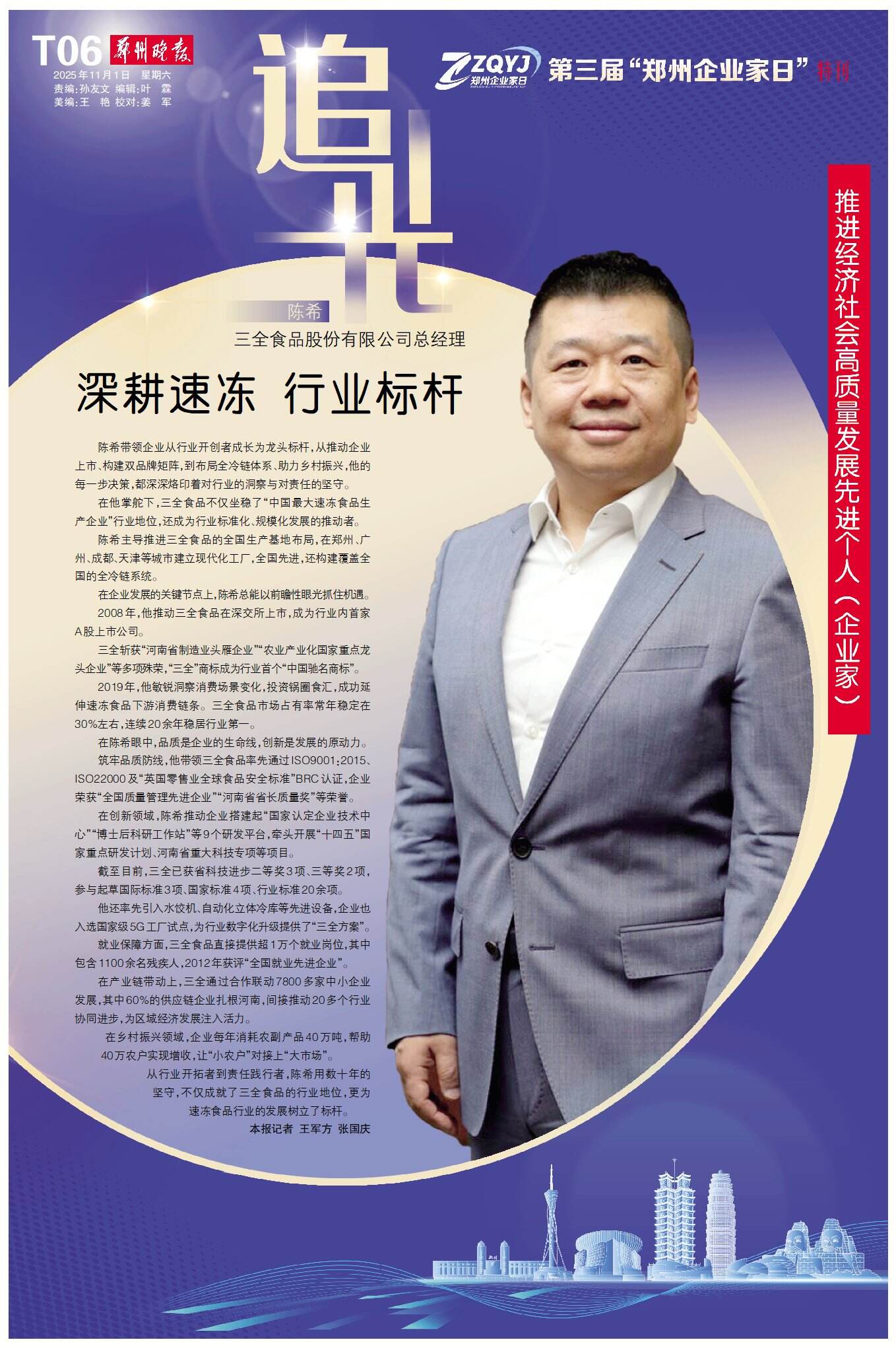 在他掌舵下,三全食品不仅坐稳了“中国最大速冻食品生产企业”行业地位,还成为行业标准化、规模化发展的推动者。