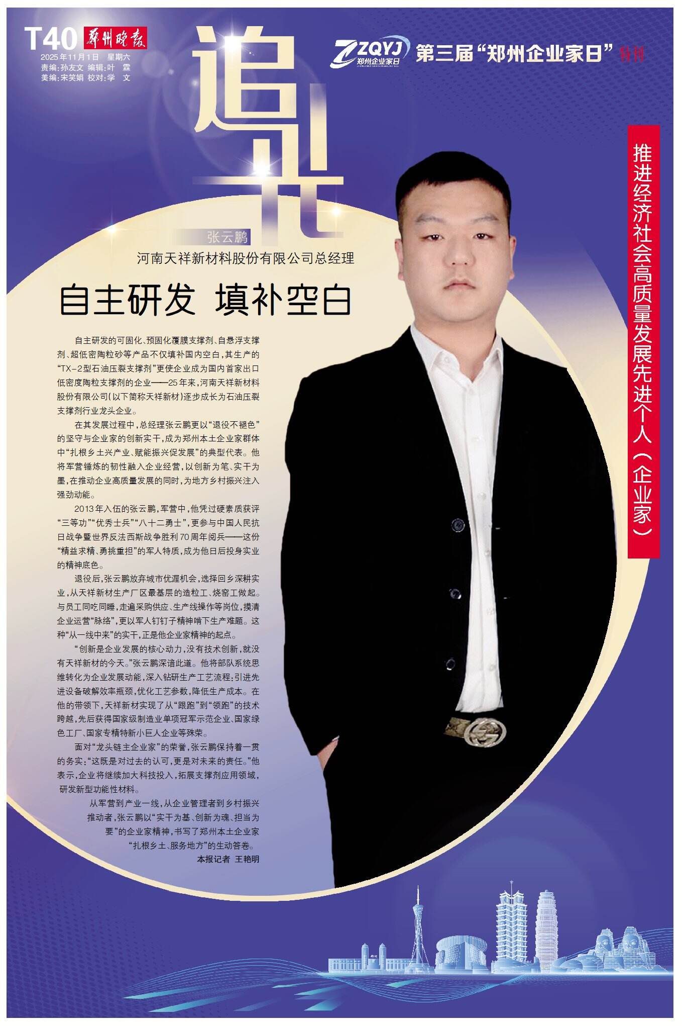 从军营到产业一线,从企业管理者到乡村振兴推动者,张云鹏以“实干为基、创新为魂、担当为要”的企业家精神,书写了郑州本土企业家“扎根乡土、服务地方”的生动答卷。