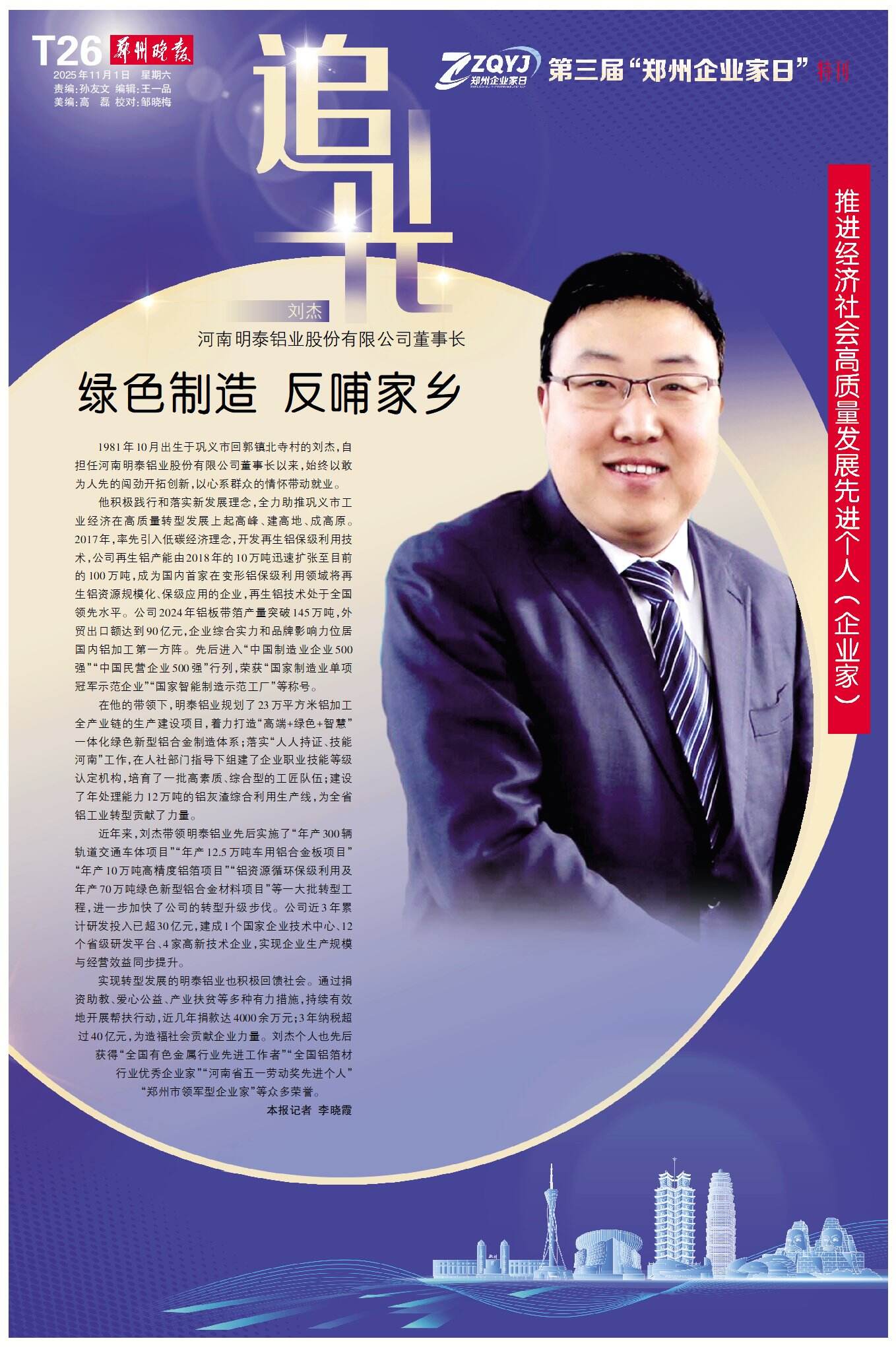 刘 杰 河南明泰铝业股份有限公司董事长